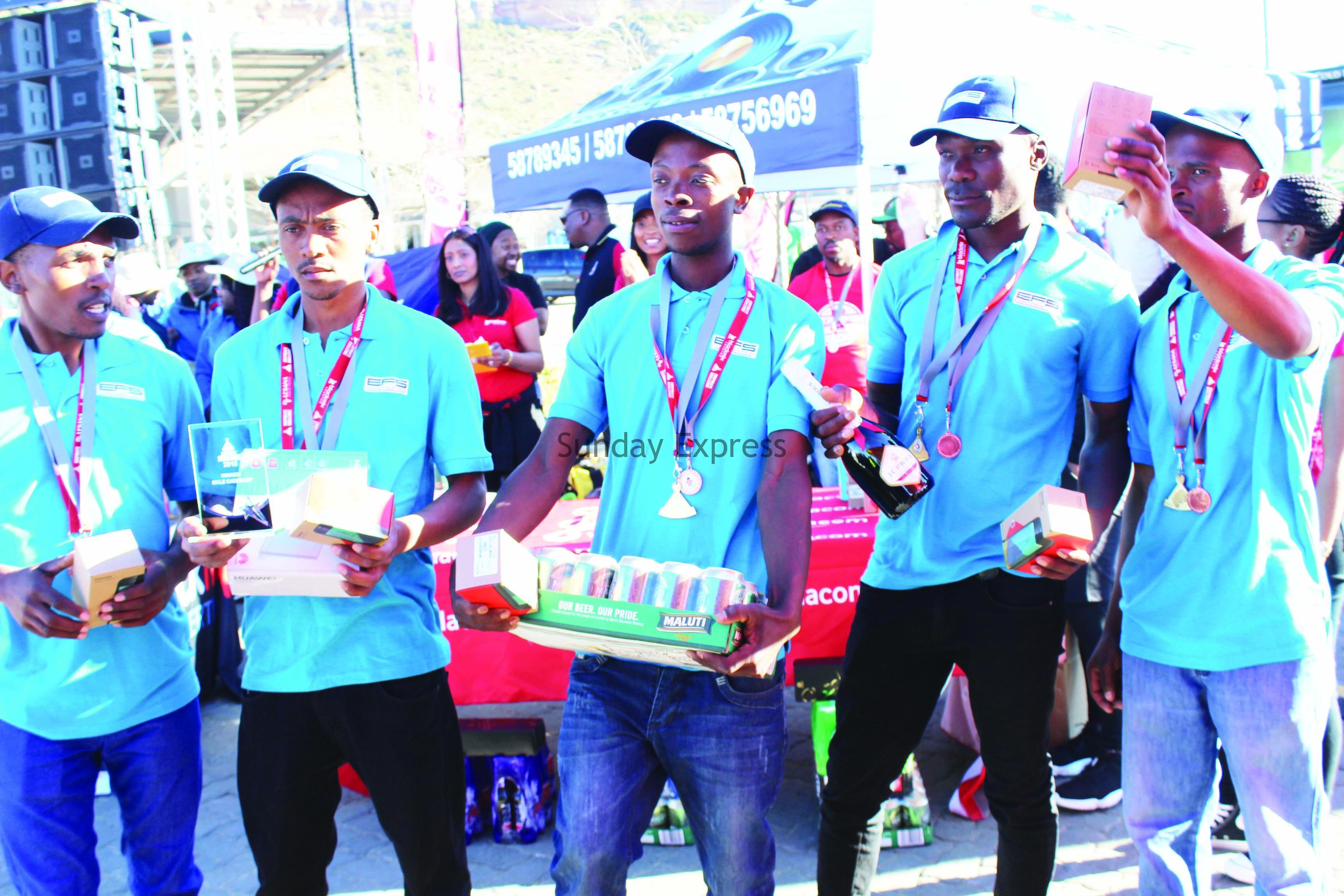 FOR the fourth year running, the five-member EFS Construction team walked home with several gifts after emerging champions at the Corporate Challenge which was held at the Maseru Mall on Friday.